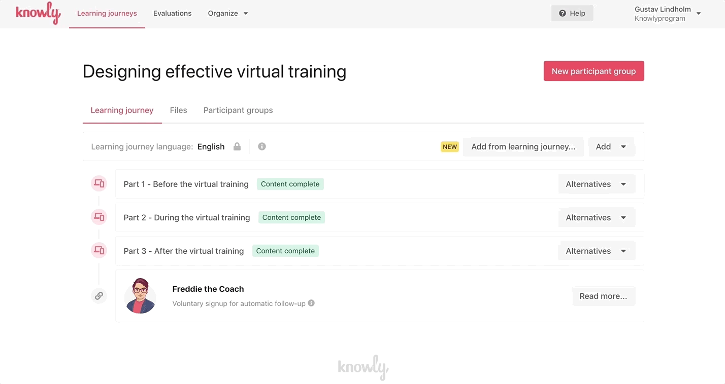 A learning journey in Knowly consists of four components; informative texts, micro-training, evaluation and training opportunities. This article describes what micro training is and how to create it.