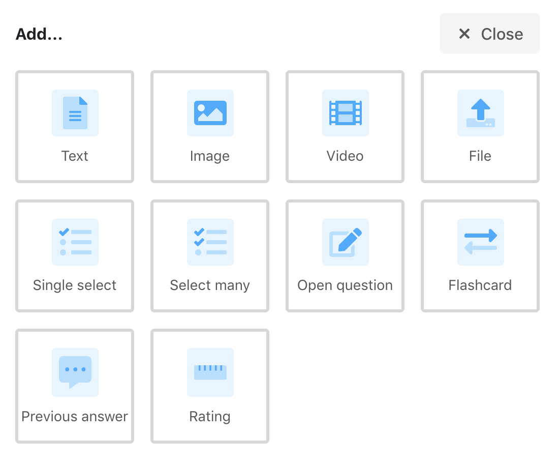 There are several features you can use in your micro training. Click on Add, and you will see the options available.